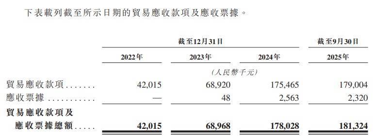 现金流层面的压力更为突出,2022年至2025年前三季度,经营活动现金流净额持续净流出,分别为-7914.3万元、-7296.3万元、-1759.2万元、-2137.3万元,累计失血超1.9亿元。造成这一状况与应收账款周转效率恶化密切相关,公司贸易应收款项及应收票据总额从2022年末的4201.5万元攀升至2025年三季度末的1.81亿元,周转天数则从99天骤增至379天,回款周期大幅拉长不仅加剧资金链紧张,也提升了坏账风险。