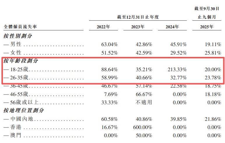 更值得警惕的是人才流失问题,2022年至2024年公司全体员工流失率分别高达63.04%、42.86%、45.91%,其中2024年18-25岁员工流失率更是达到213.33%,26-35岁核心员工流失率也维持在32.77%的高位,较高的流失率一定程度上冲击技术研发连续性与项目交付能力。